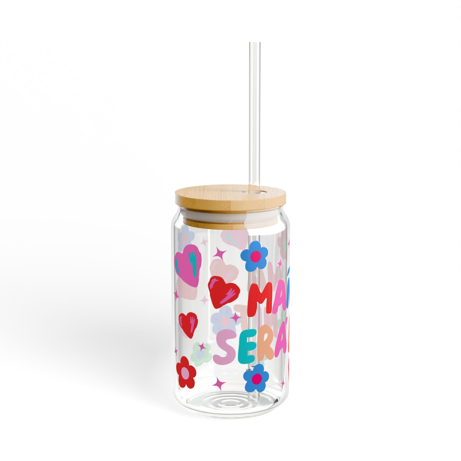 Manana Sera Bonito, Colorful Sipper Glass, 16oz - Cute Floral and Heart Design - Gift for Friends, Birthday, Party, Eco-Friendly Drinkware
