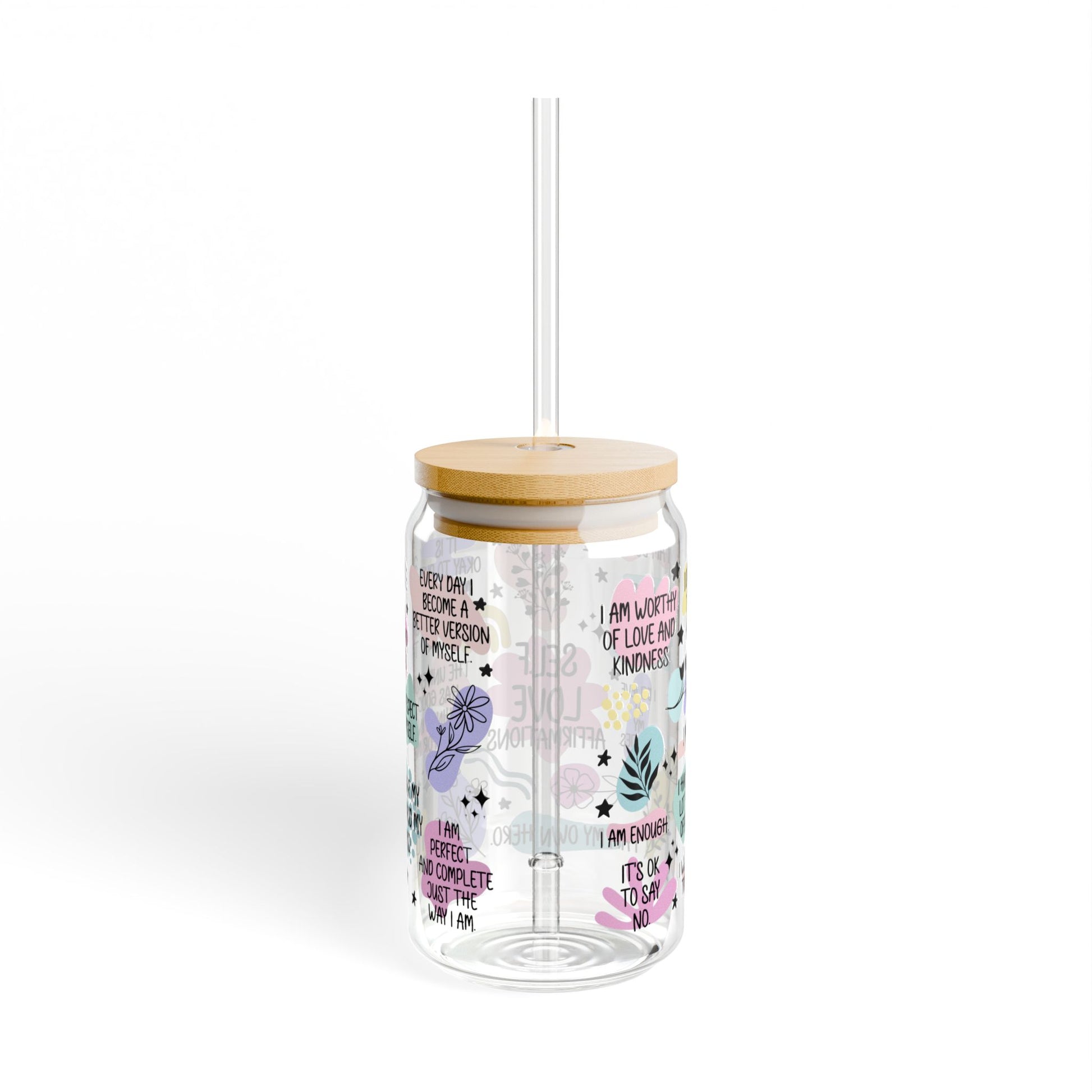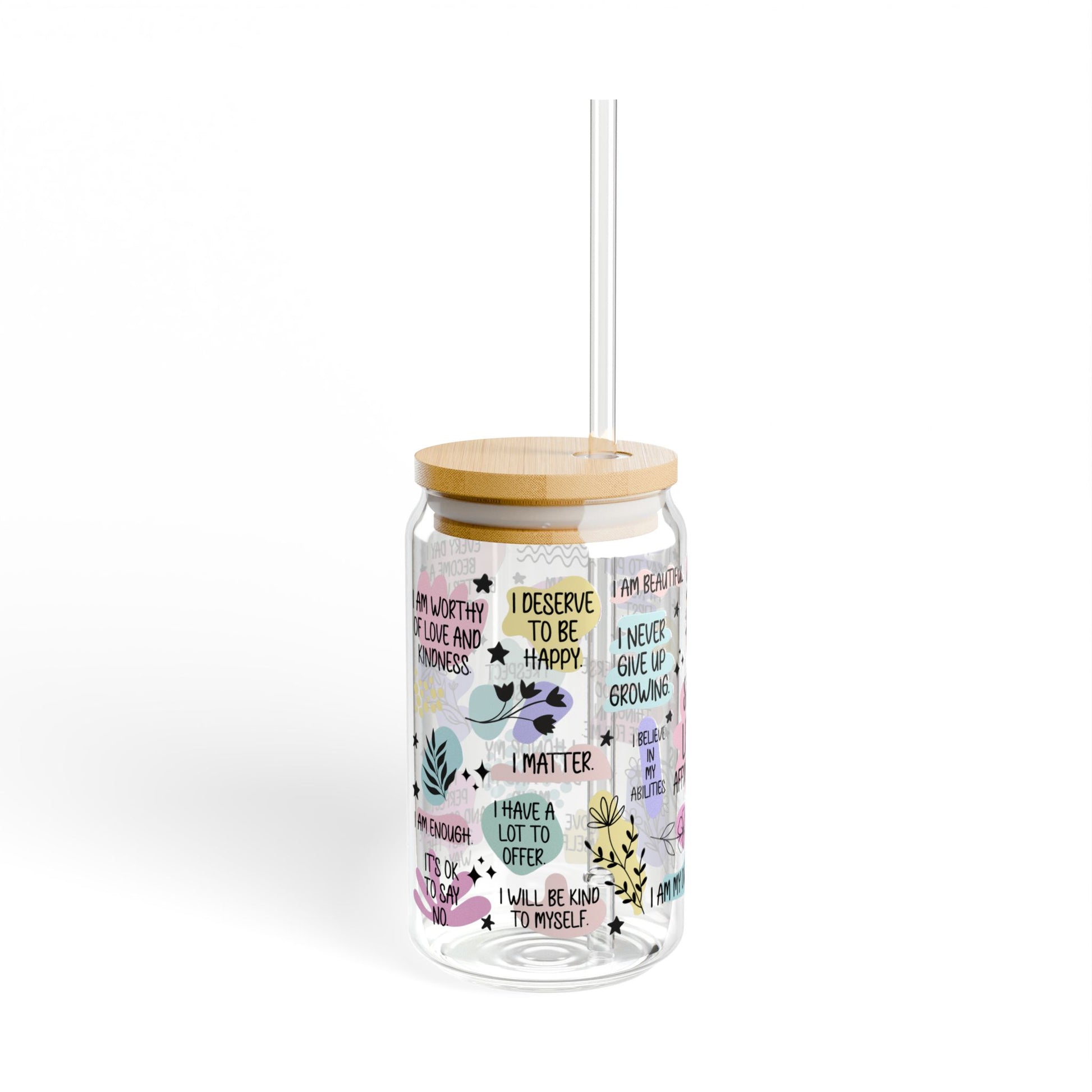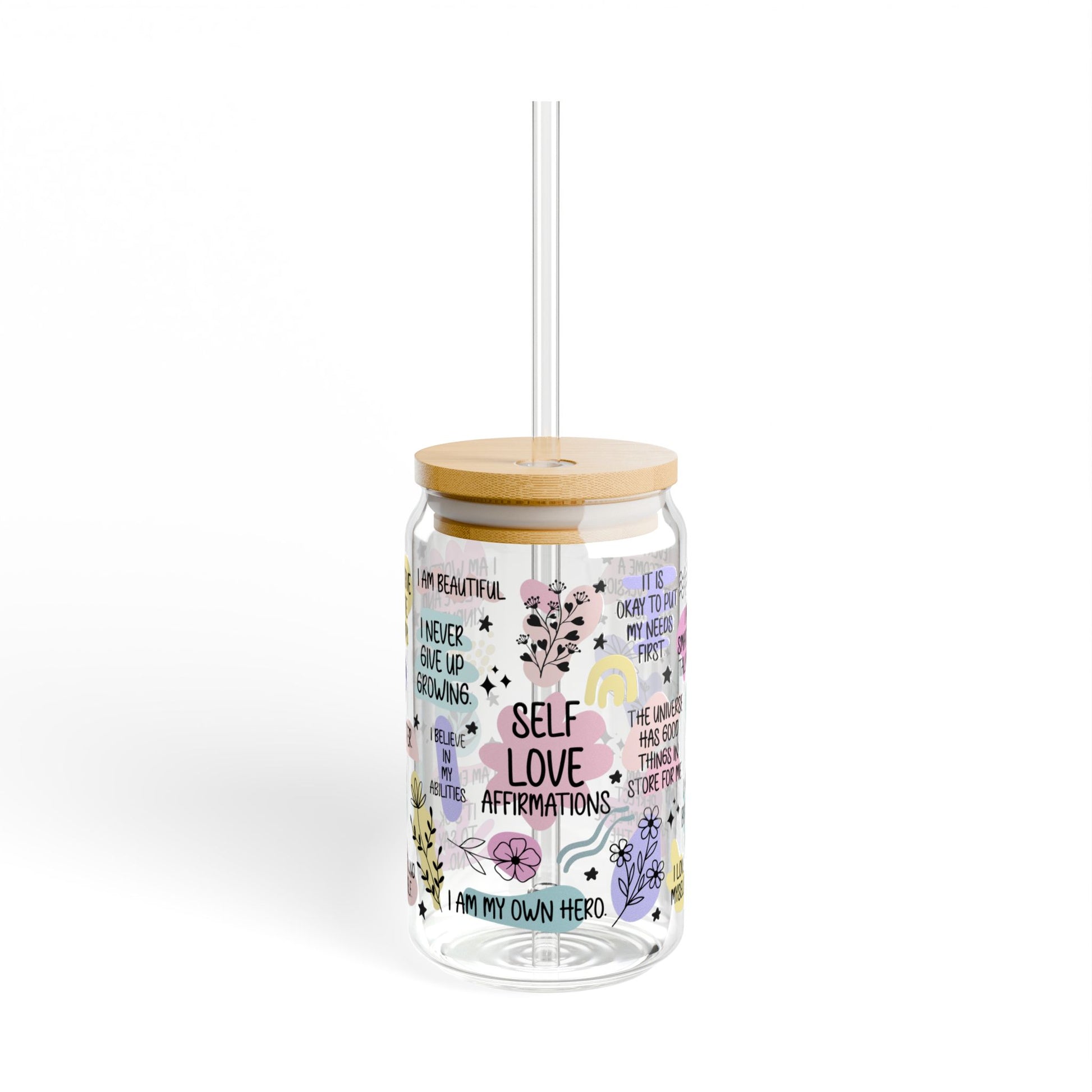 Positive Affirmation Sipper Glass, Inspiring Drinkware, Self-Love Quotes, Mindfulness Gift, Motivational Water Glass